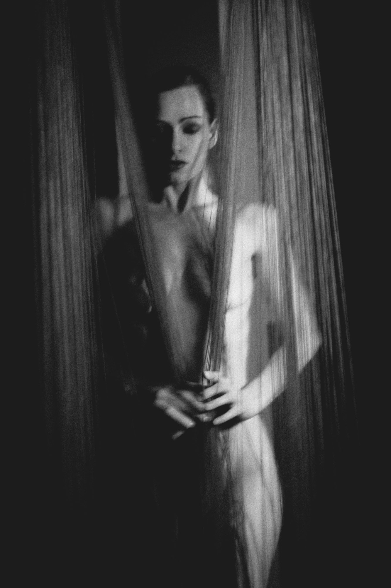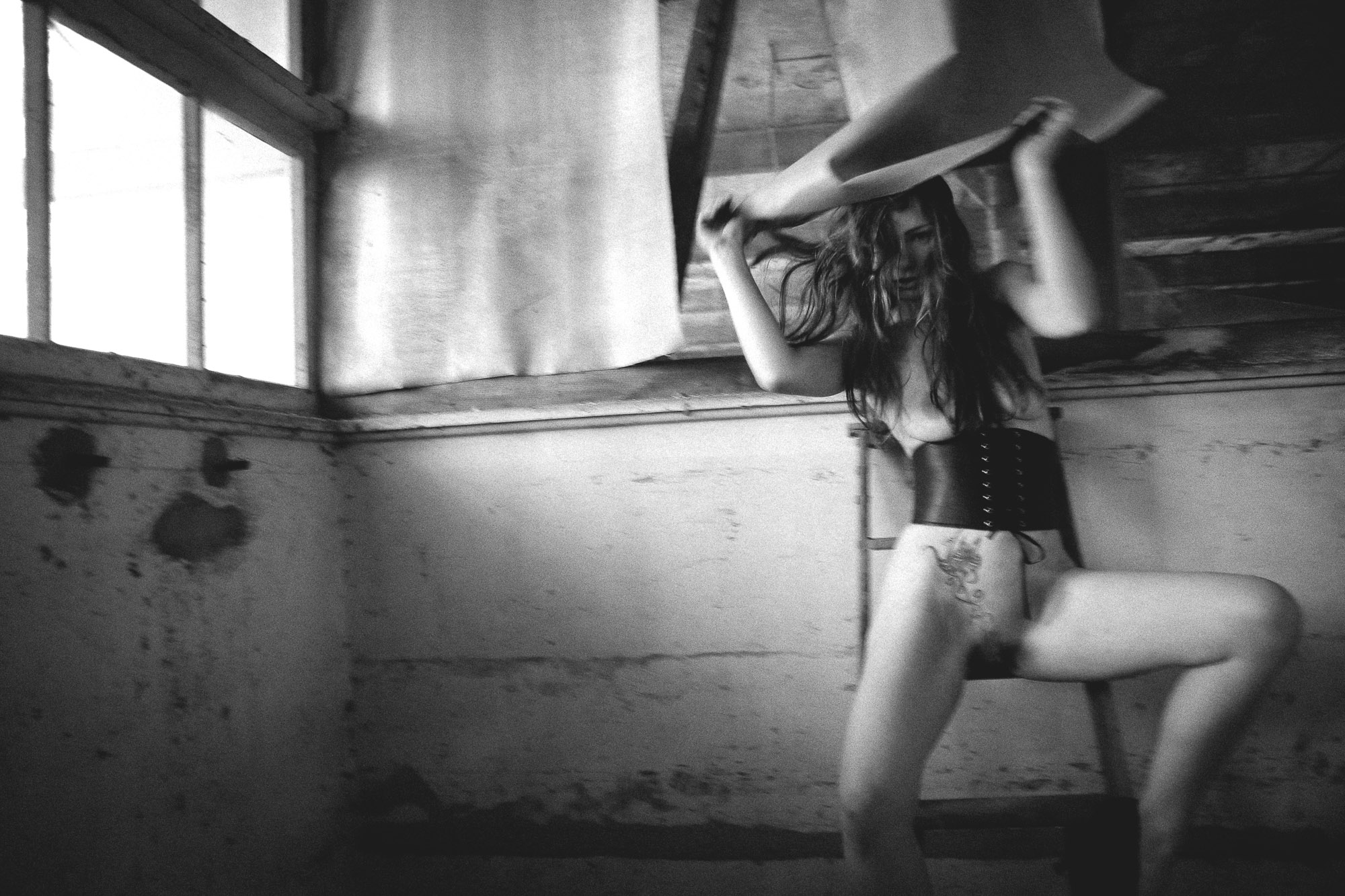 Die Shootings von Serge Katama und Desty (https://www.facebook.com/FotomodelDesty/ ) sind Tänze. Beide fordern sich permanent. Sie bewegt sich unentwegt, ekstatisch, zerrt an ihrer Kleidung, an Haaren, Haut, windet sich durch die Räume wie ein Derwisch, ist mal auf der Flucht, mal im Angriffsmodus. Er folgt ihr, treibt und feuert sie an, die Kamera hämmert wie ein Maschinengewehr - es ist ein Rausch mit offenem Ende. Bis zu 6000 Aufnahmen können so am Ende entstanden sein - eine Materialschlacht im Fieberwahn. Die erotische Fotografie von Katama und Desty ist pur, ungeschönt, authentisch. Kein Hochglanz, kein Glamour, keine statische Inszenierung. Die Bilder wirken direkt „in“ die Sinne - sie schmecken, sie riechen, sie fühlen sich an. Sie erzählen von Verletzlichkeit und Zärtlichkeit, von ehrlicher Leidenschaft, von Hingabe, Kontrolle und Kontrollverlust.